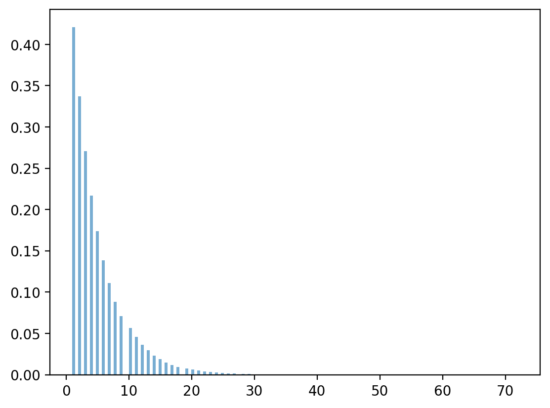 We can verify that \(x\) is indeed geometrically distributed by the following numpy program.